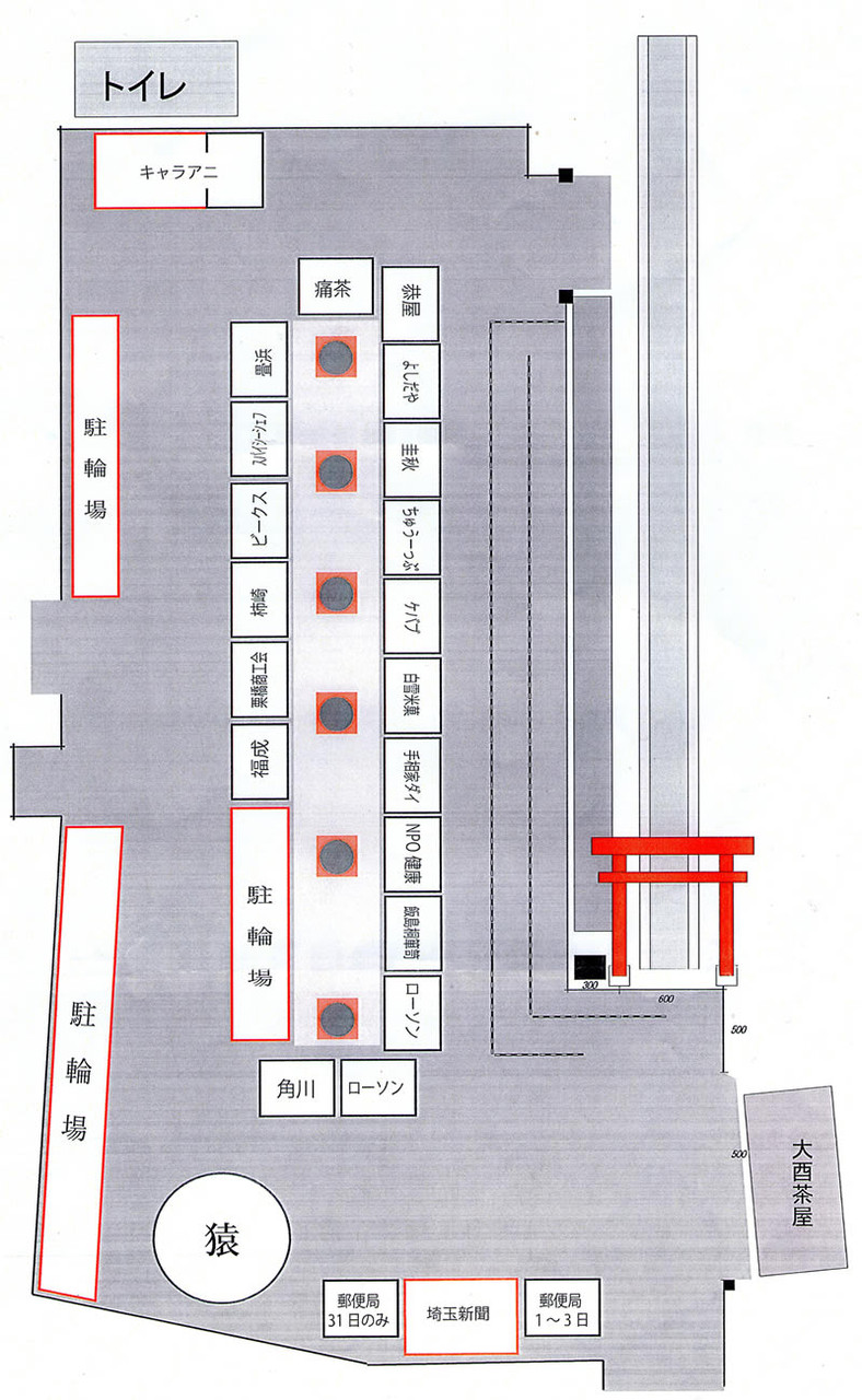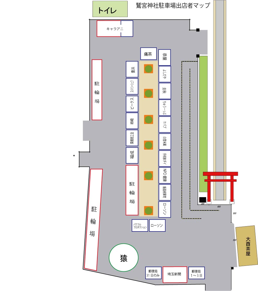 鷲宮神社駐車場初売り出店ブースレイアウト