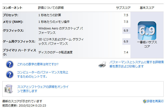 まぁこの早さも最初のうちだけでしょうけどね・・・、使い続けると遅くなってくるのはパソコンの宿命ですし・・・。