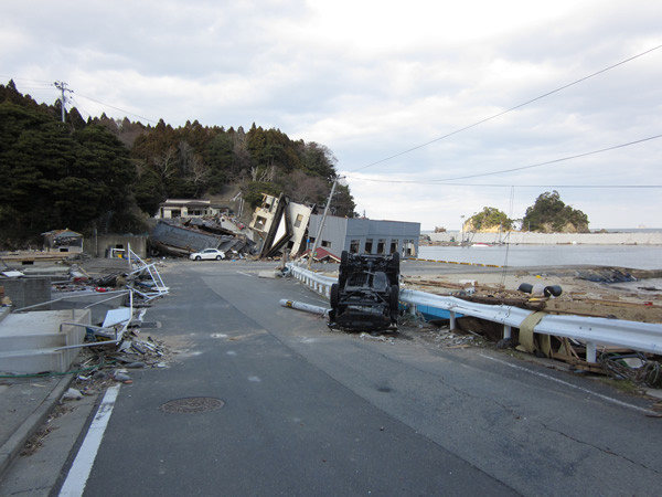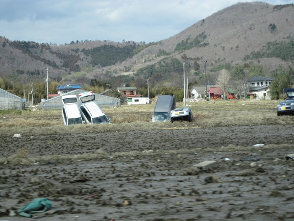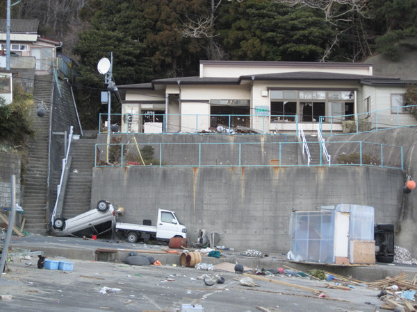 海から少し離れた高台にまで車が・・・
