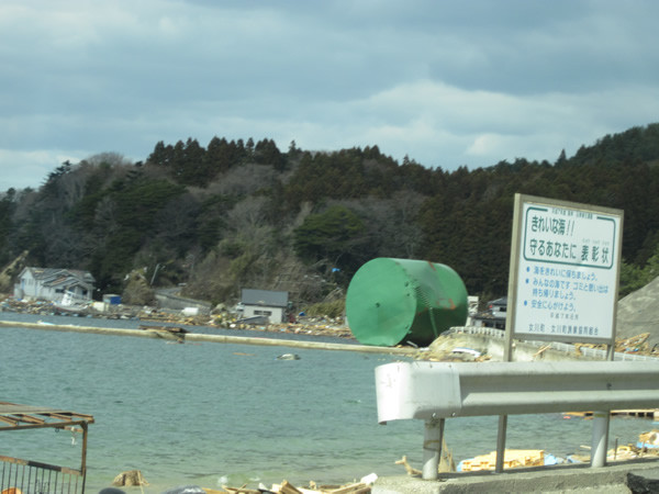 巨大なタンクも流れ着いてました