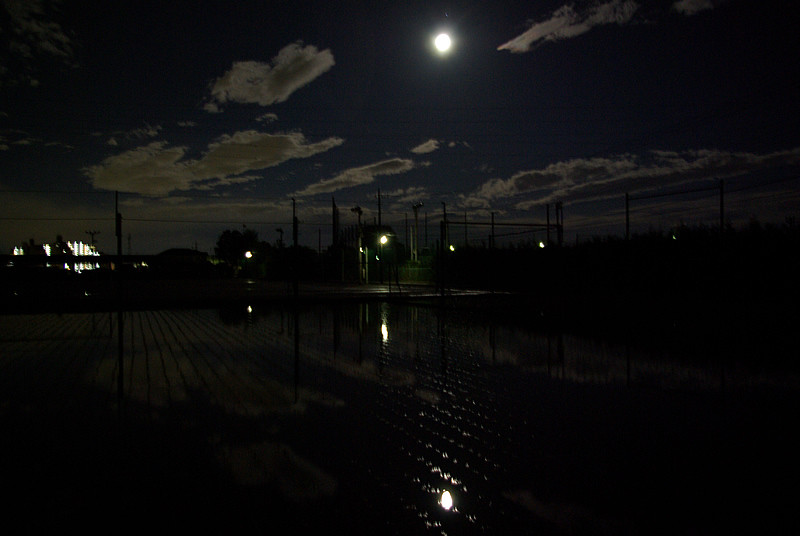 月が水田に映るように撮ろうとしたのですが、うまく撮れたとは言えないですね^^;
