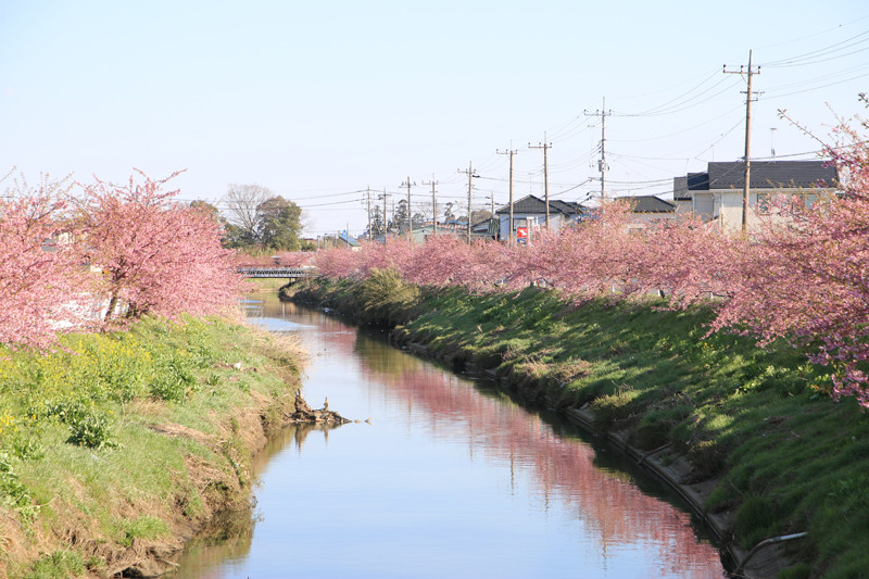 青毛掘川は加須〜久喜を流れる農業用排水路なのですが、鷲宮地区の一部には川沿いに河津桜が植えられています。