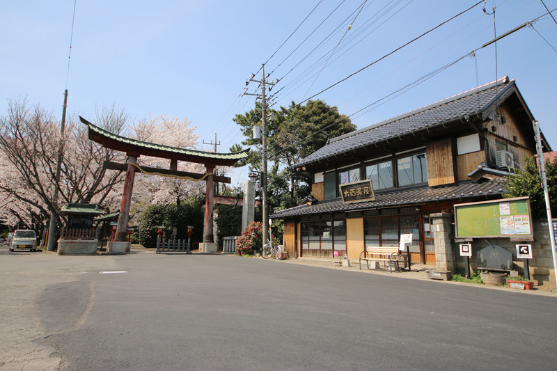 鷲宮神社鳥居前を大酉茶屋も入れて撮影。