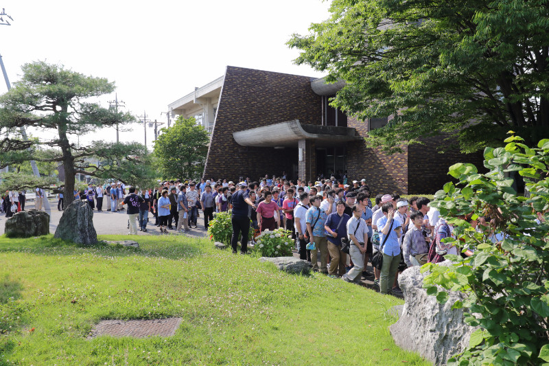 公民館に入れるのは立ち見を合わせても200名ぐらいまでなので、抽選を行って公民館組と公民館に入れなかった人用に商工会館2階でパブリックビューイング組に分けられるという感じ。