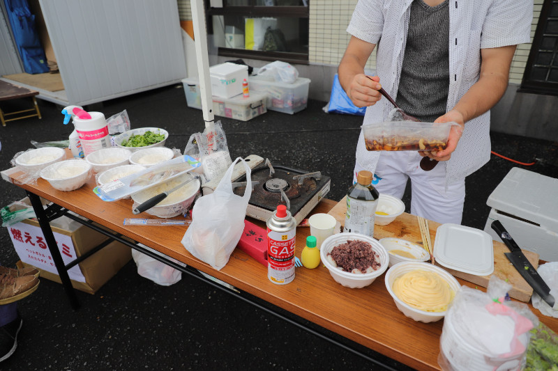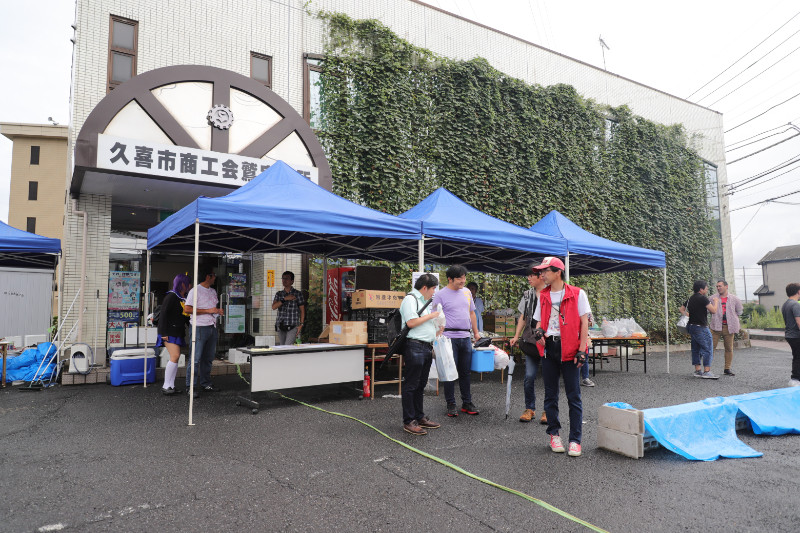 当日は昨晩から雨が降っていて、お昼前にはやみましたが当初予定していたコミュニティ広場がぬかるんでしまったので、急遽商工会の駐車場で行うことにw