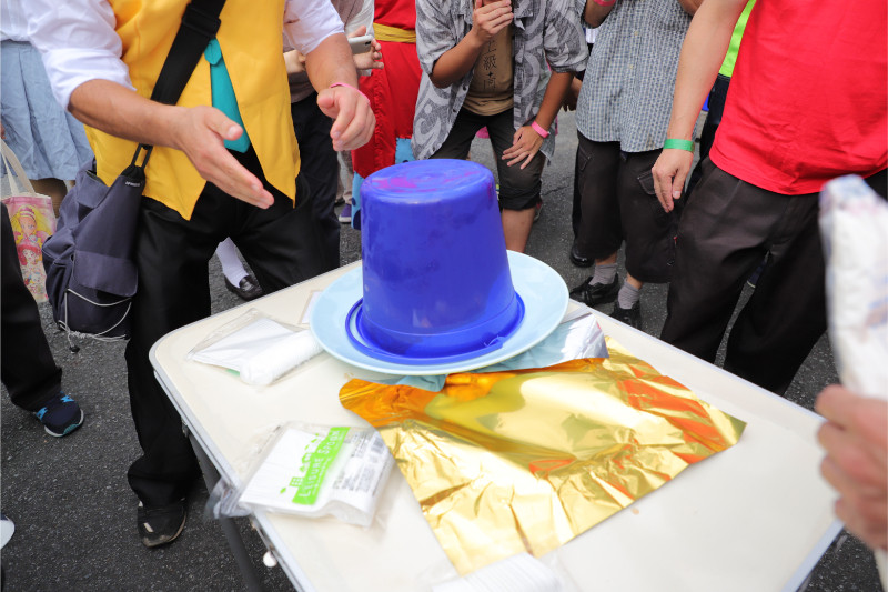 BBQも中盤に差し掛かると、会場中央に登場したバケツと大皿。