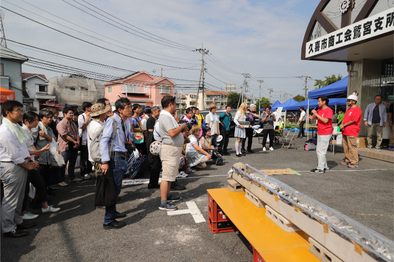 注目を集めて人だかりが!