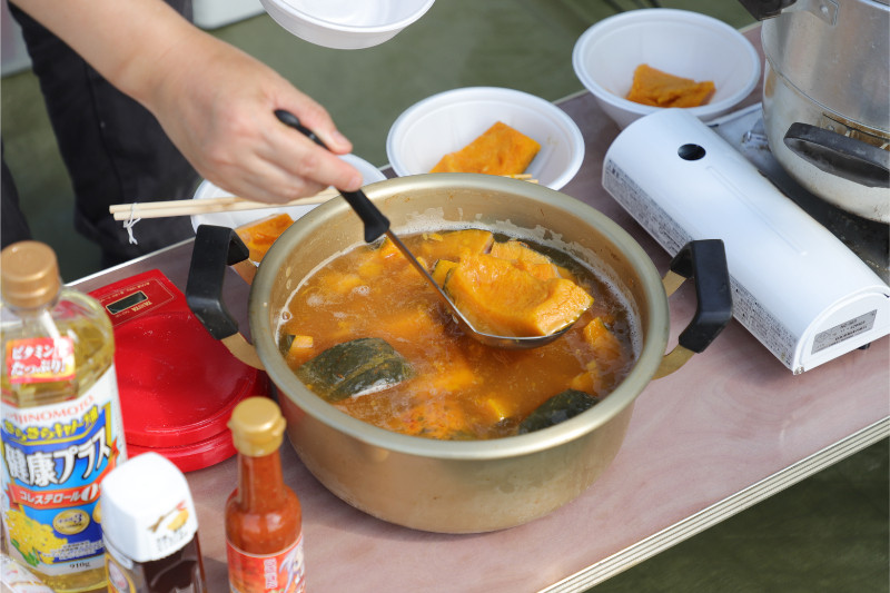 別のテーブルではかぼちゃが煮込まれてました。