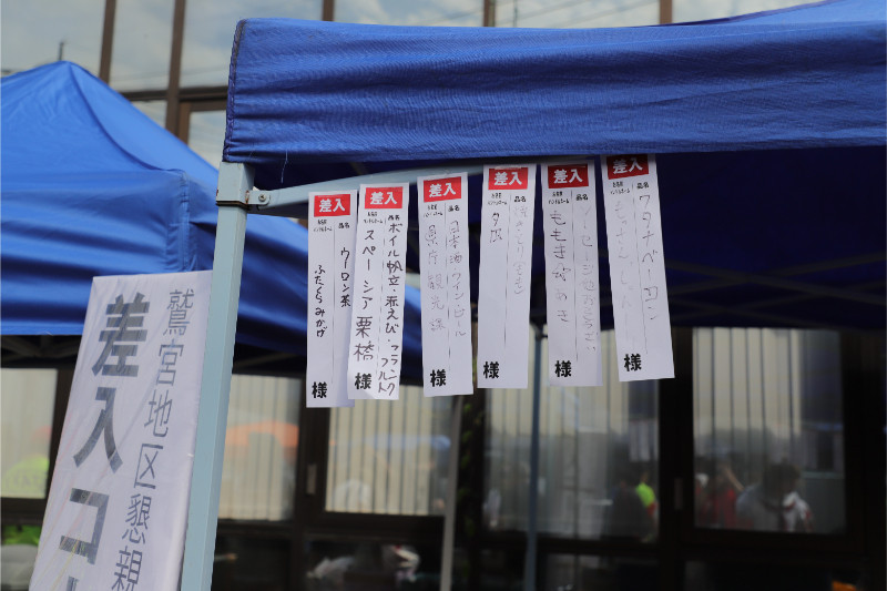会場内のテーブルを見ると何やらいろんな差し入れ品が・・・。