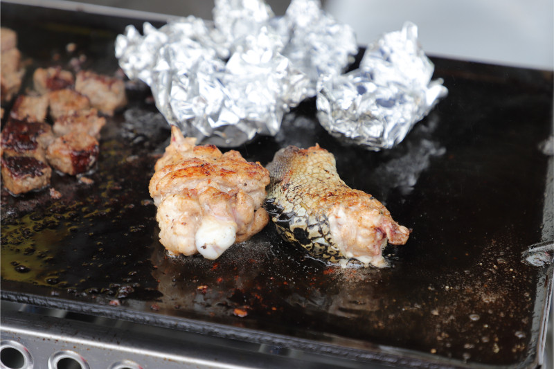 焼いて食べる!自分はさすがに食べなかったですが、鶏肉っぽくて普通に食べれたらしい。