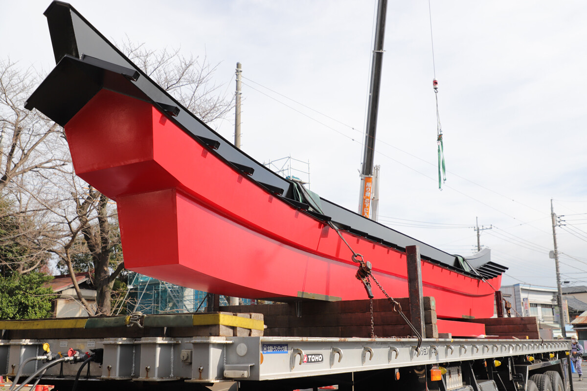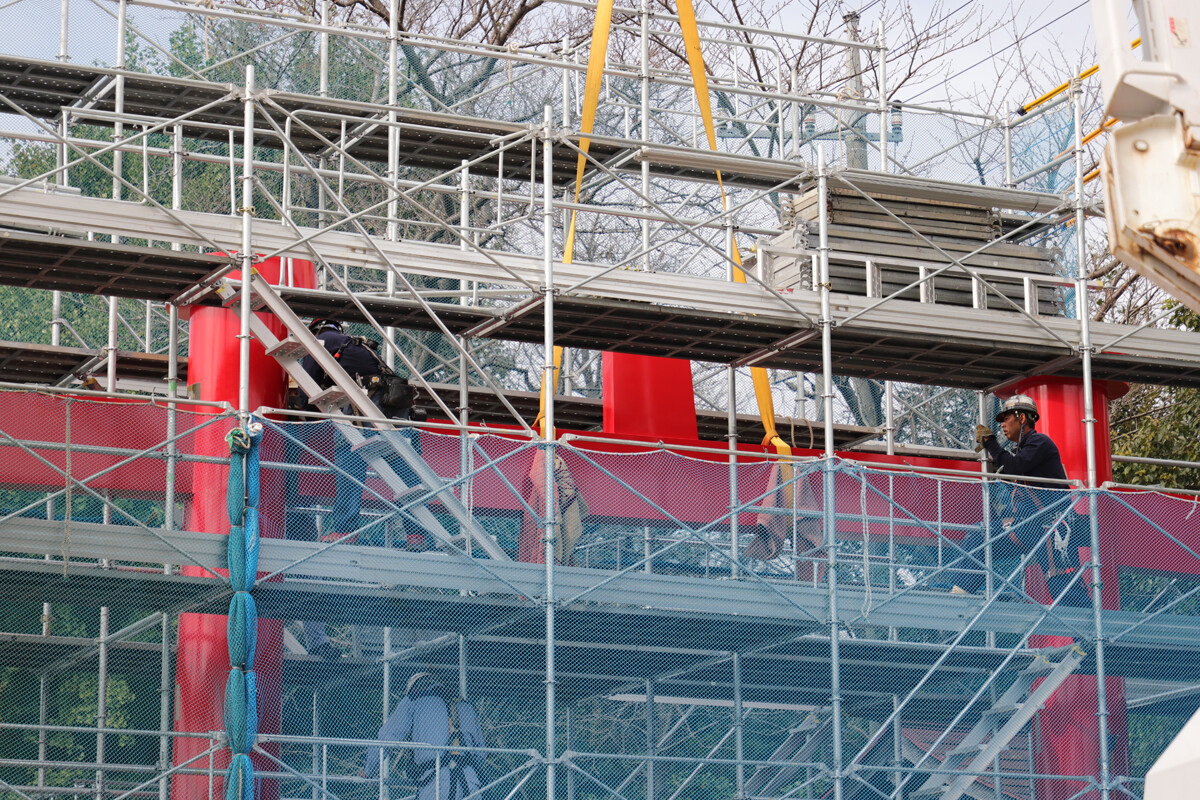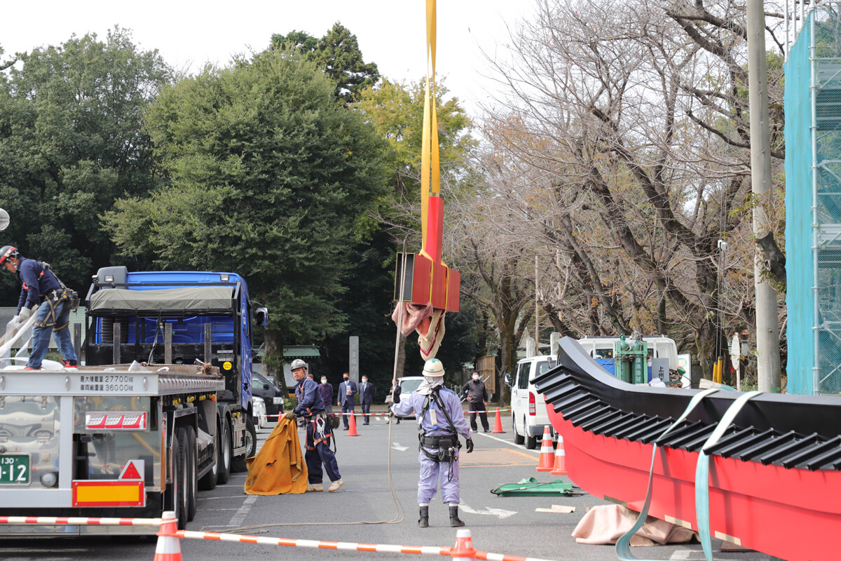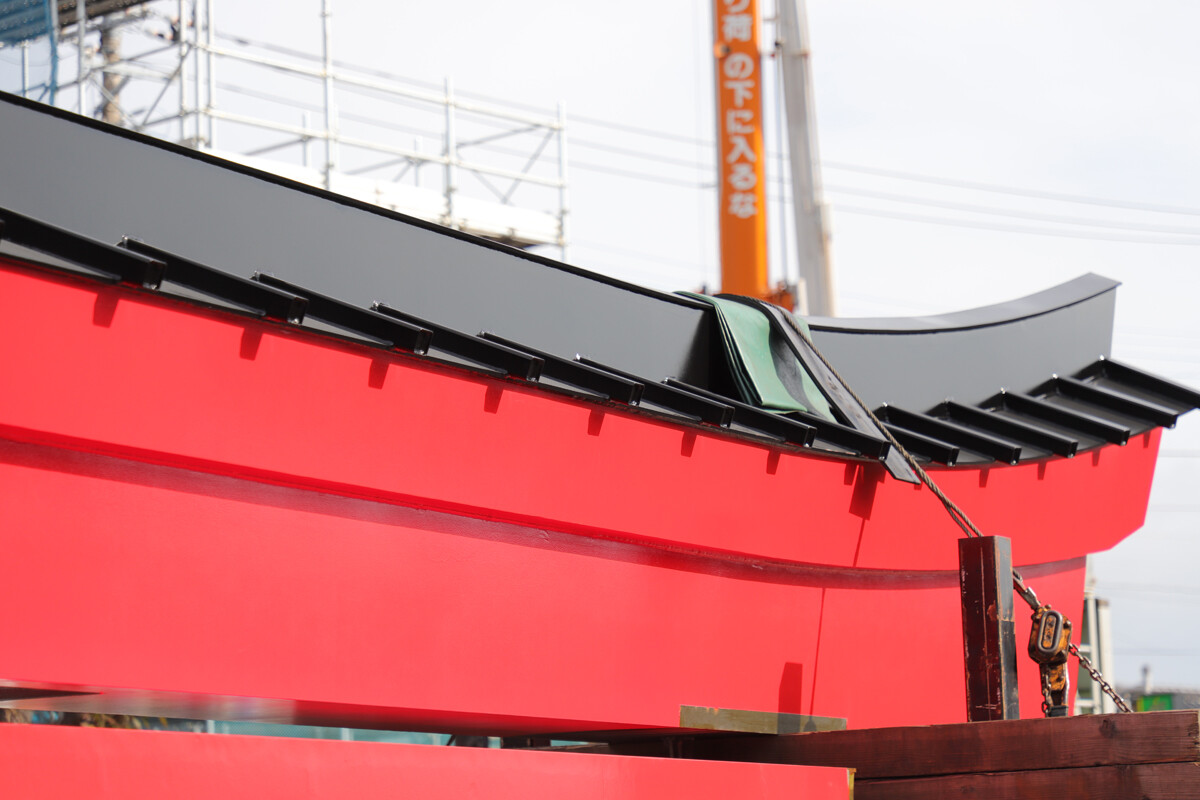 今回は鳥居の大型パーツのみで、このあと細かな装飾等をしていくそうです。家で言うところの棟上げみたいなもんでしょうか。