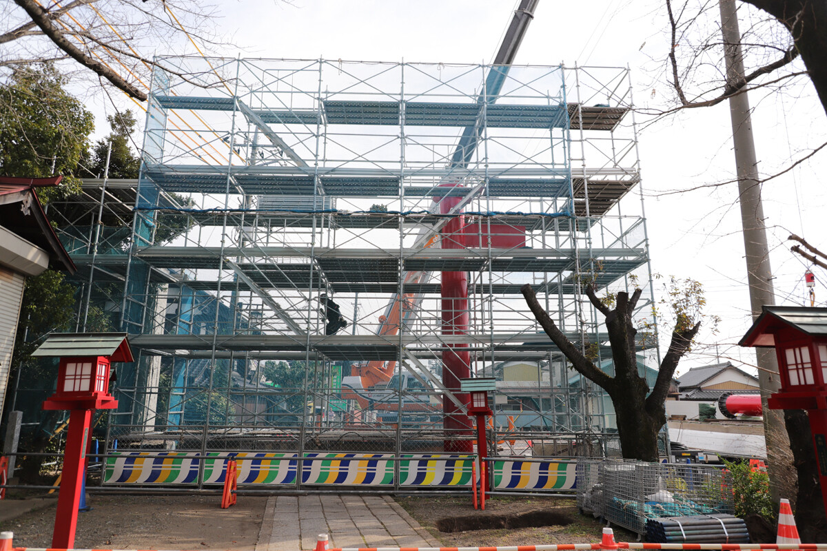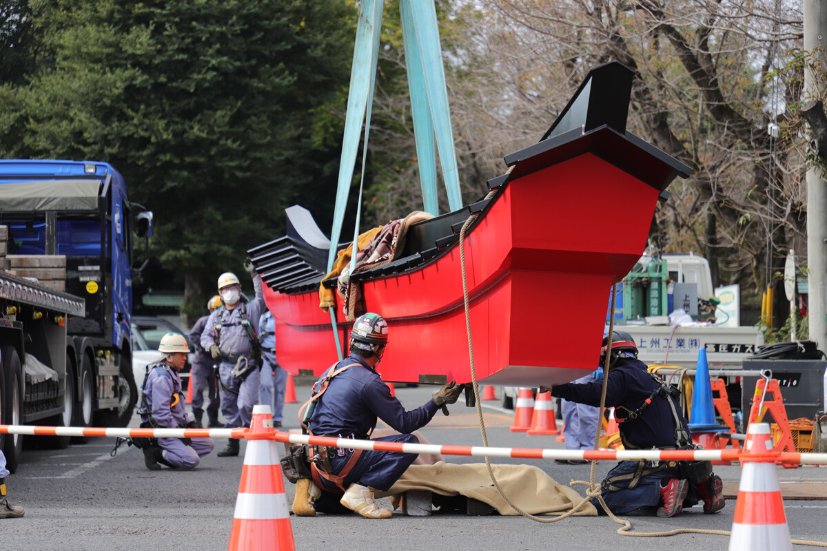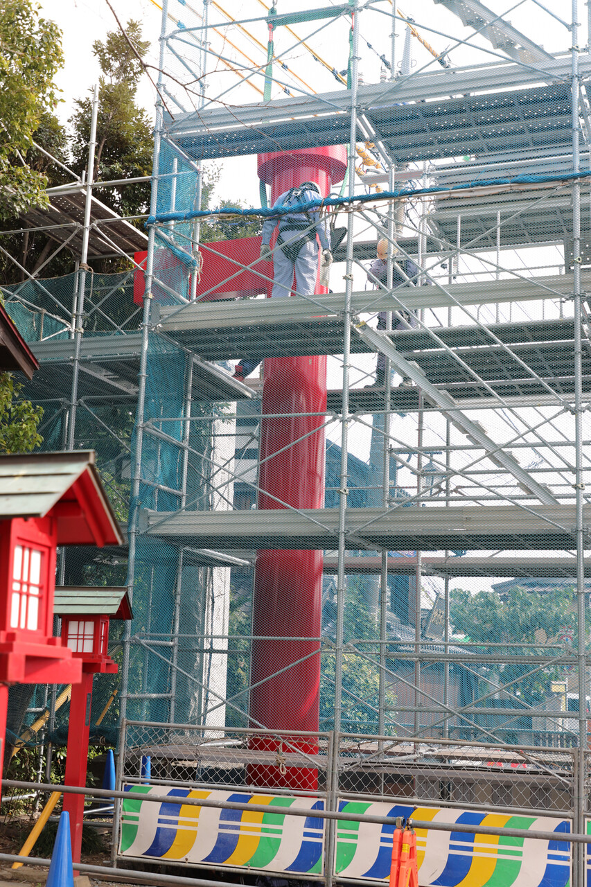 今回は鳥居の大型パーツのみで、このあと細かな装飾等をしていくそうです。家で言うところの棟上げみたいなもんでしょうか。