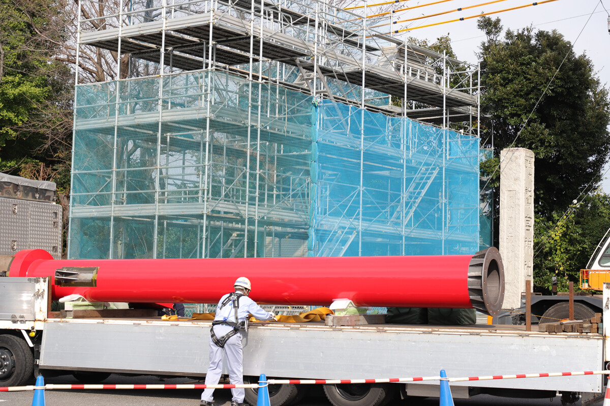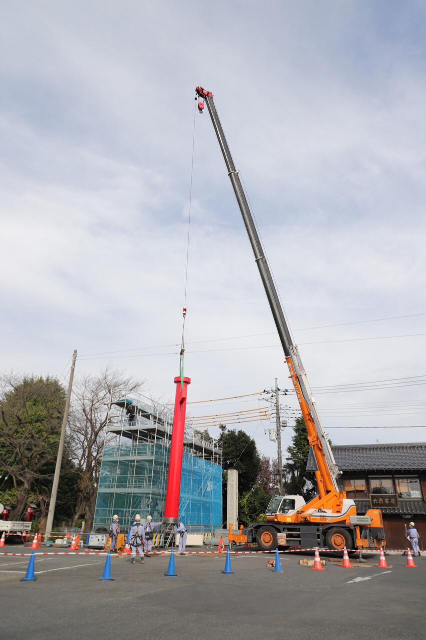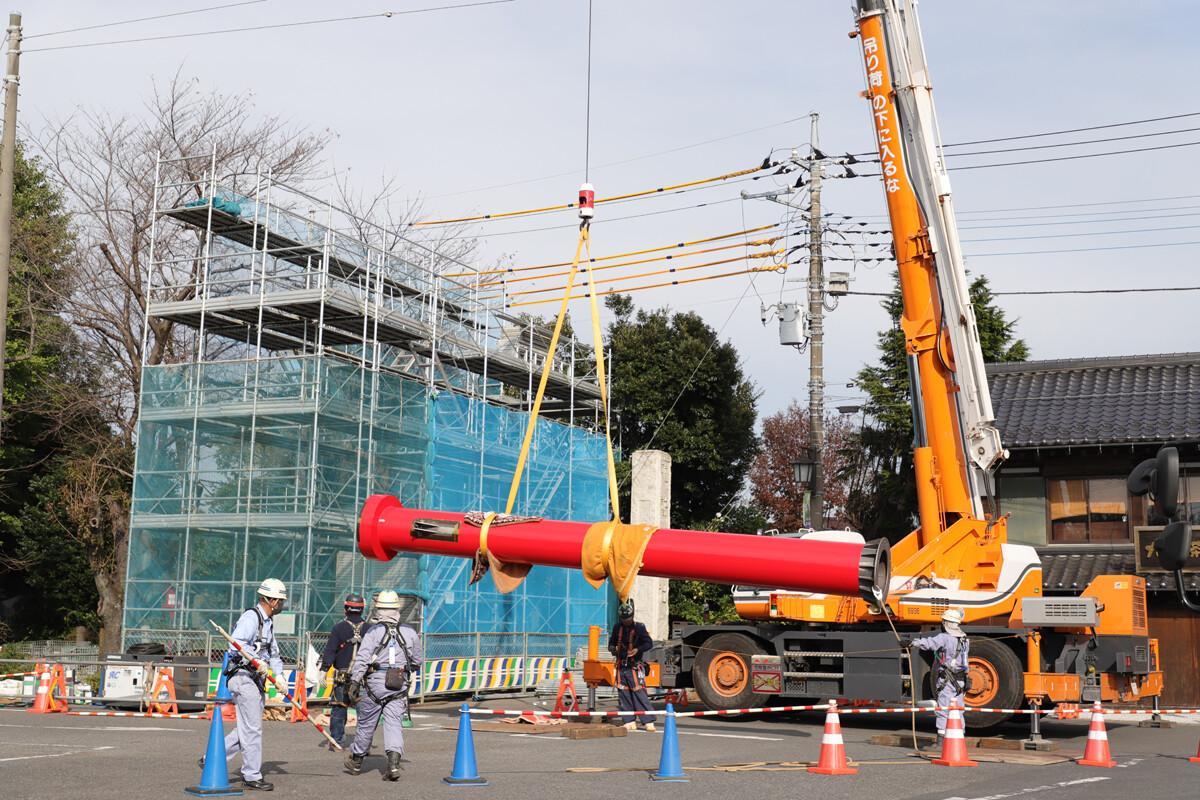 場所も移動して今度は境内側から2本目の柱の設置を見学。