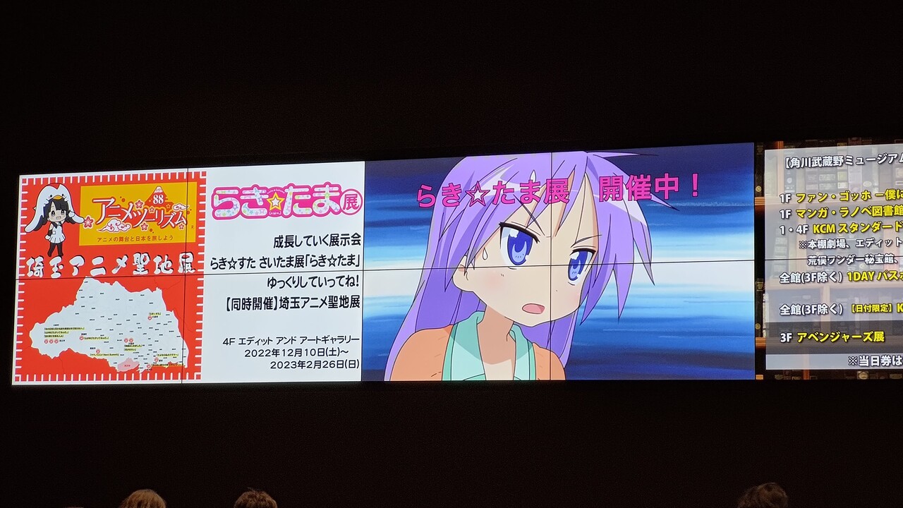 チケット売り場のモニタには「らき☆たま展」の紹介が映し出されてました。