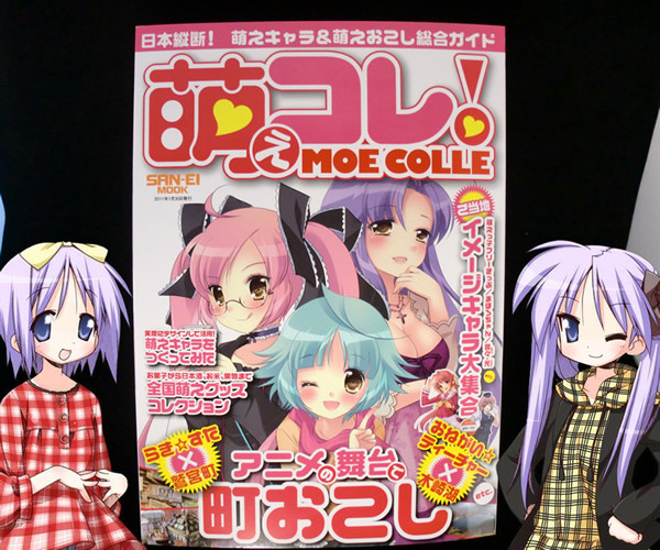 鷲宮以外にも、「おねがい☆ティーチャー」や「おねがい☆ツインズ」の木崎湖や、「true tears」の富山県など、アニメで町おこしをしている主要地域の特集の他、その土地に行かないとなかなか見れない萌えキャラクターによる観光等のPRポスターやご当地のイメージキャラ紹介も!